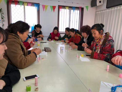 活动开始前,望着桌上摆放的变色色粉、纯露、维生素E、白蜂蜡、甜杏仁油等制作材料,居民们充满了好奇。专业老师讲述了手工唇膏的环保型和科学理念,对配方比例、制作步骤进行了生动地讲解,并现场动手操作示范。大家认真听完老师的讲解后,都跃跃欲试,在领到材料后就立即开始动手制作,制作的过程中不断地向老师请教,反复确认自己制作口红的步骤是否正确,一丝不苟地制作自己心爱的口红。最后经过阿姨们的精心制作和耐心等待,一支支漂漂亮亮的口红出炉啦!看着自己亲手做的成品,不少阿姨已经忍不住开始照着镜子涂抹起来,阿姨们相互讨论着说:"这个颜色好看不?适不适合我?"