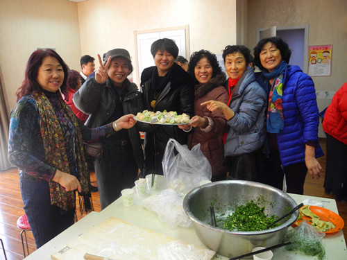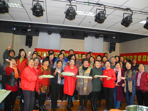 今年的包饺子活动不同于往年,今年的饺子可是五彩的,桔色、白色、绿色、紫色,红色的面团摆在大家的面前,原来这些面团都是用蔬菜汁和的面。在老师的引导下,居民们自愿组合,有秩序的分成五个小组,大家动作娴熟、揪面团、擀饺子皮、包饺子,有条不紊,还相互切磋包饺子的技巧。热腾腾的饺子不一会儿就新鲜出"炉",居民们围坐在一起,一边吃饺子,一边聊天。